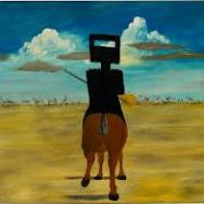 ). Nolan’s paintings depict Kelly as an almost mythical figure, wandering about Australia like a ghostly Don Quixote. Reduced to the essence of his legendary attributes – armour and square helmet, the true Kelly is not really there. In some of the paintings we cannot even see his hands or lurking eyes.