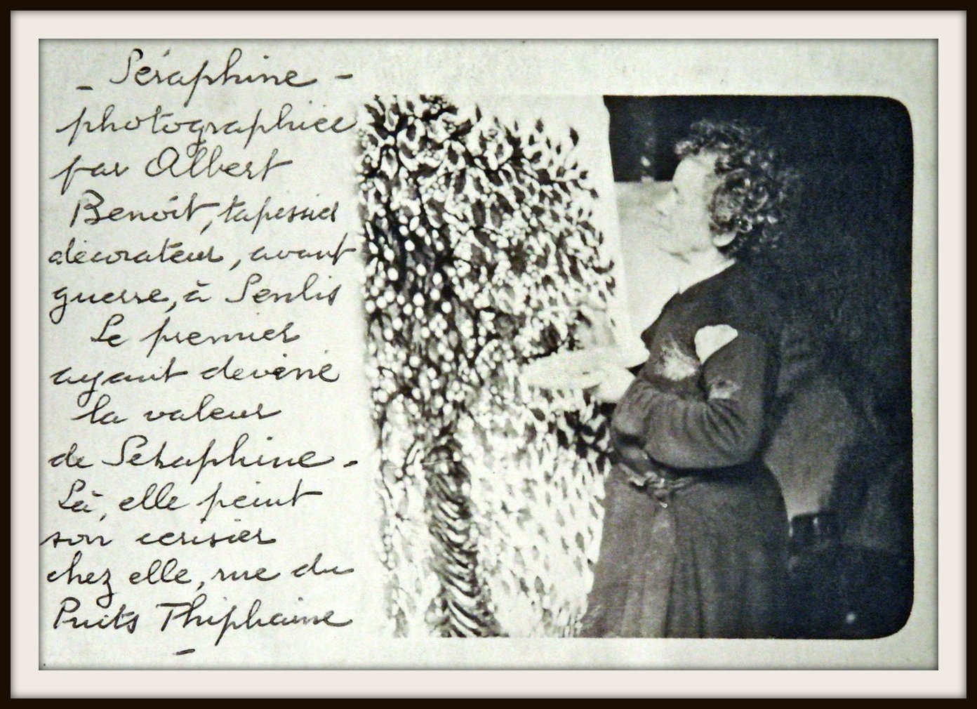 In 1929, after the exhibition Painters of the Sacred Heart, organised by Uhde, Séraphine experienced the joy of having money for the first time in her life.  Unfortunately, her financial security was not destined to last very long. In 1930, due to the effects of the Great Depression, Uhde could no longer pay for Séraphine’s works. It seems that this episode of financial success was the major cause of her mental breakdown. The visions of rich and comfortable life perturbed her simple mind to the point where she was no longer able to paint. The genius was lost there and then.